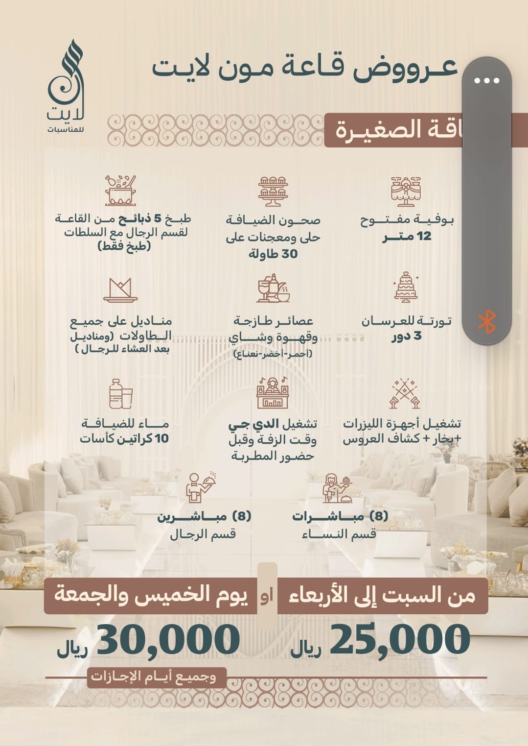 الباقة تبدأ من 25,000 ريال إلى 30,000ريال