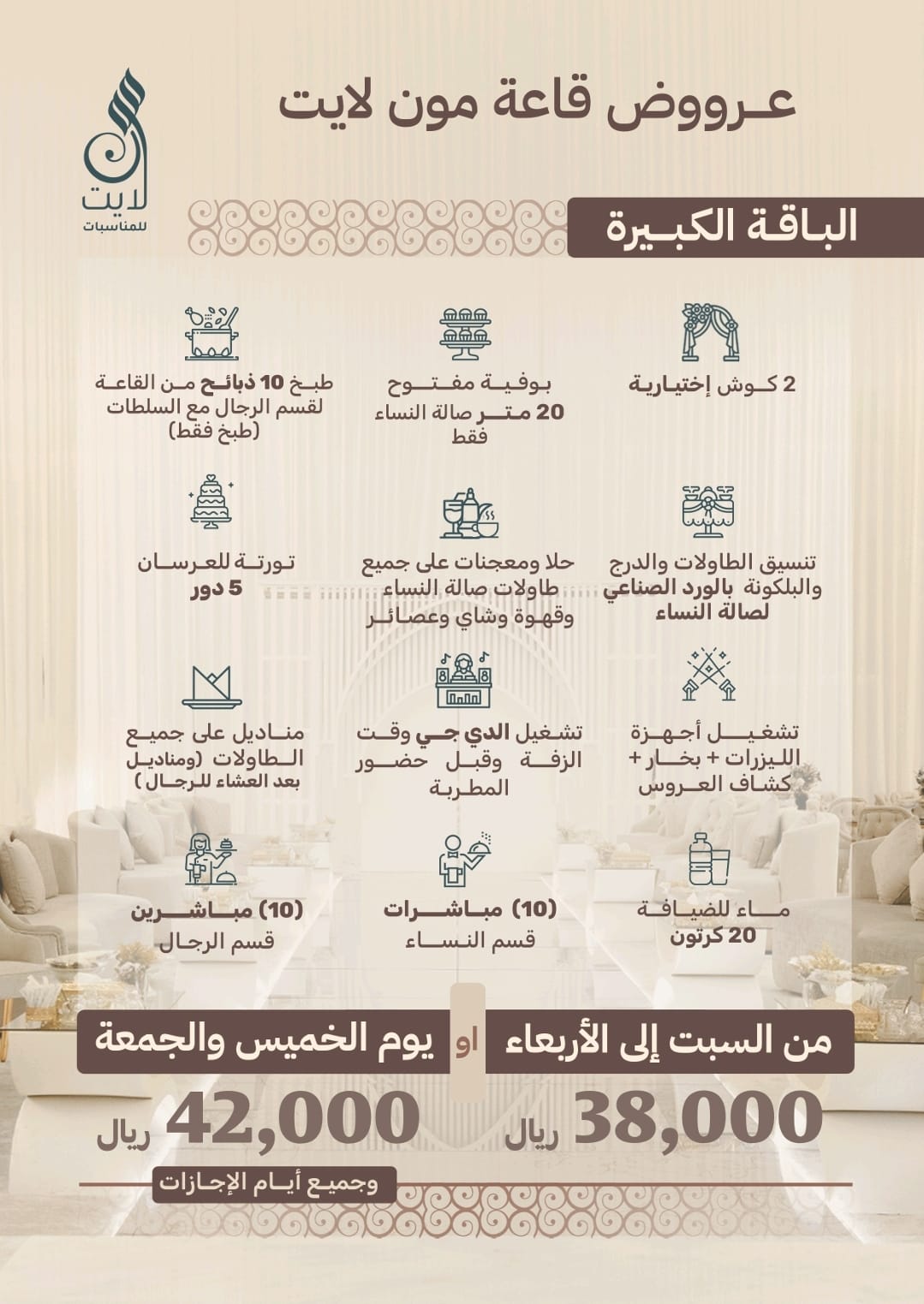 تبدأ هذه الباقة من 38,000 ريال إلى 42,000 ريال